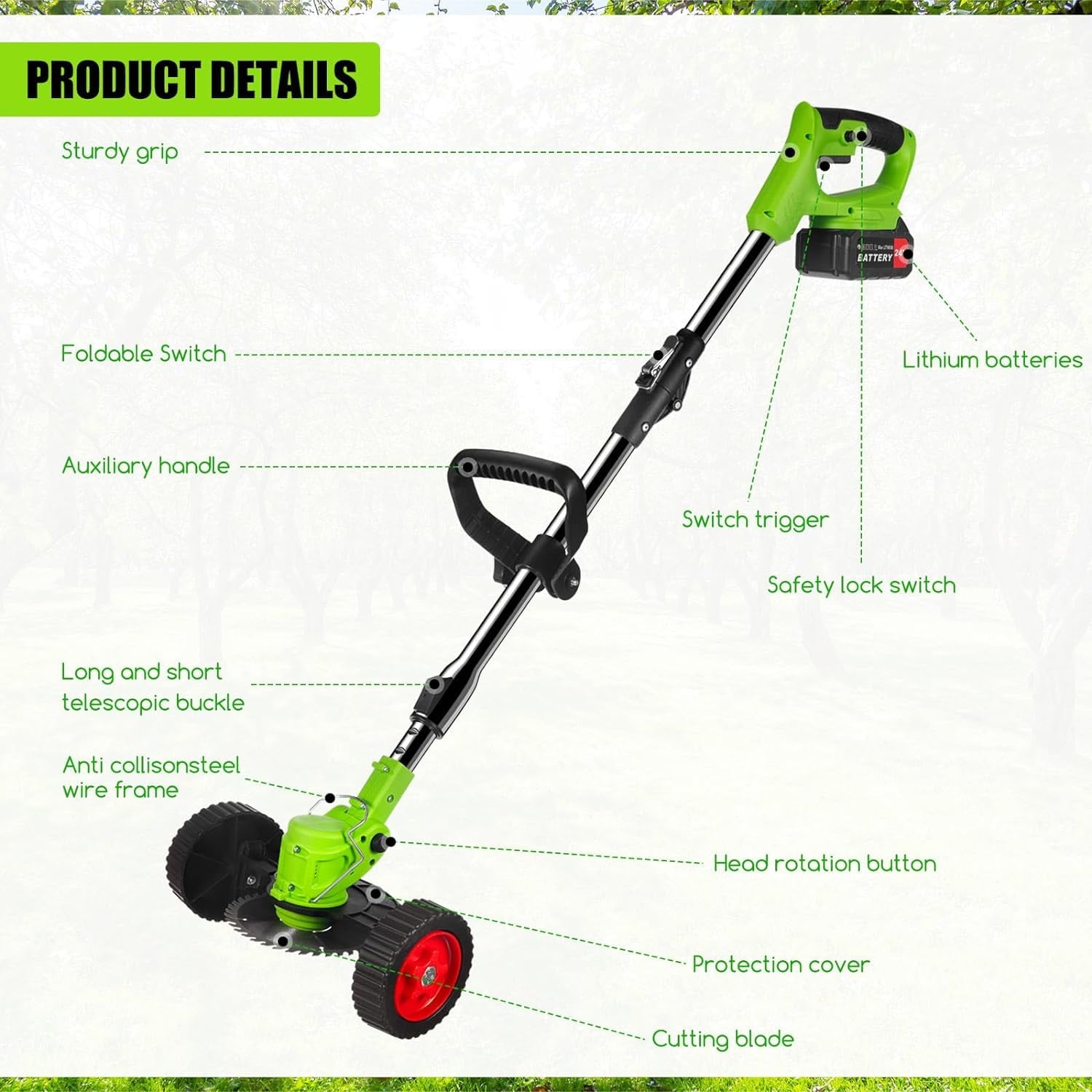 🏡Cordless Electric Weedeater Battery Operated: In order to adapt to different height requirements, Jahy2Tech cordless electric weed wacker grass trimmer is adjustable in length (36.6 inches - 51 inches). Weighing approximately 4.4 pounds overall, the body is lightweight and won't tire you out when you use it. Battery operation, cordless binding, more convenient to use.