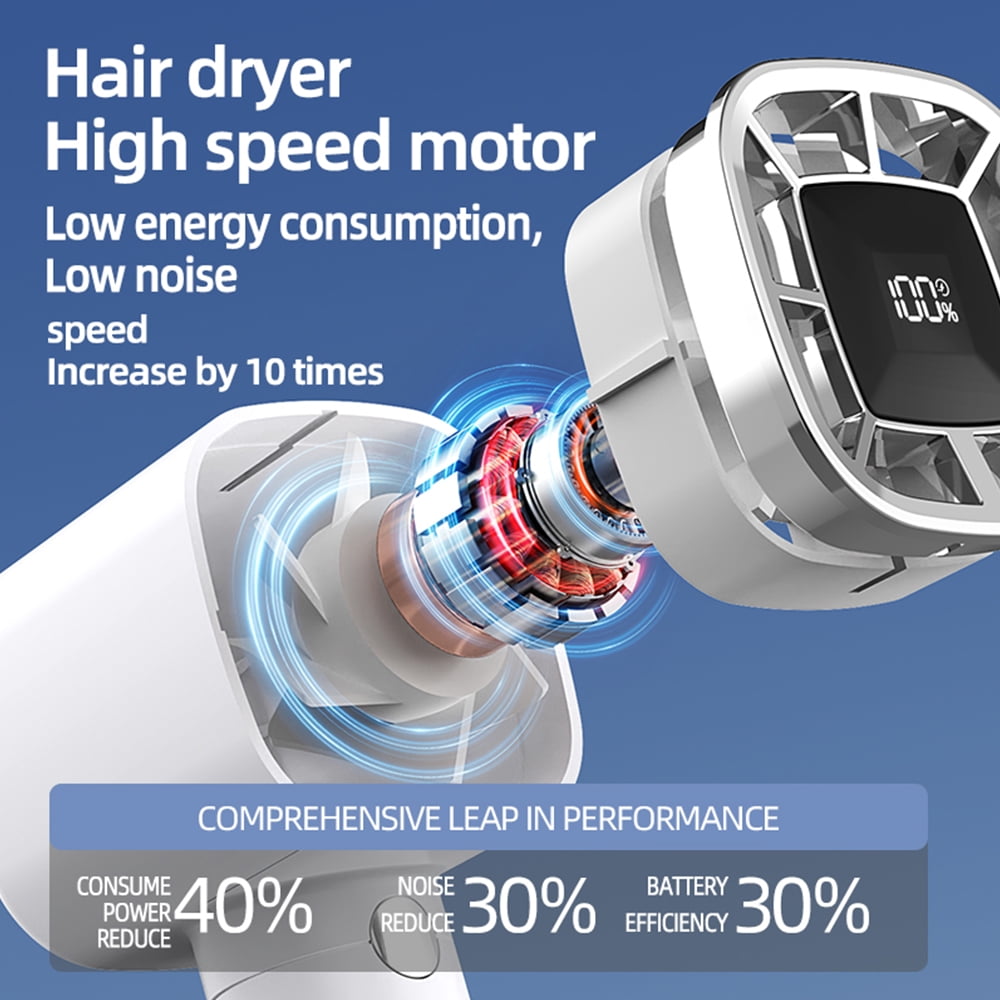 -With three wind speed settings (low, medium, high), easily toggle between modes and keep track of the battery level on the screen after 5 seconds of switching.