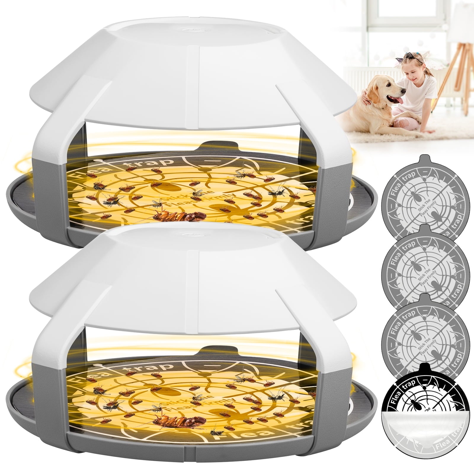 Indoor Flea Trap 2 Packs with 4 Sticky Refill Discs, Upgrade Electric Flea Traps for Inside Your Home