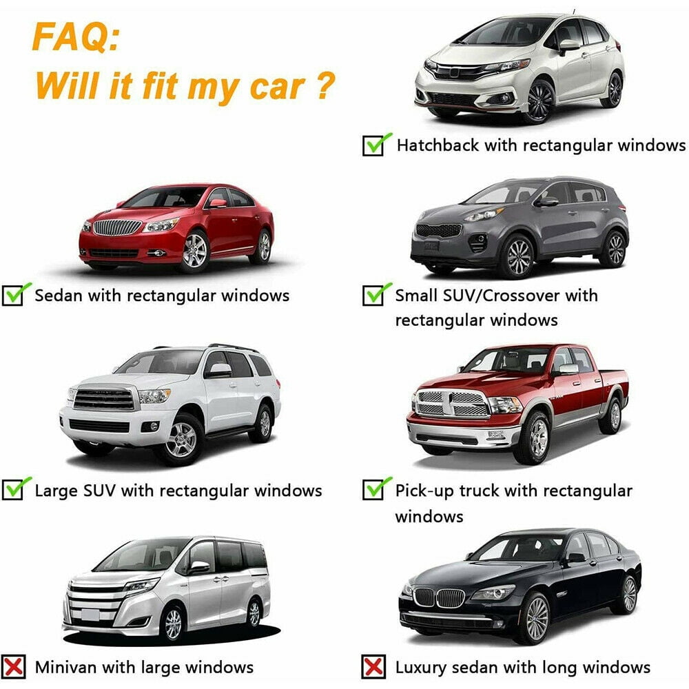 - 2.Universal Design: it is universal, not specially designed for some cars, if your car window is within the size range, it will be your choice!