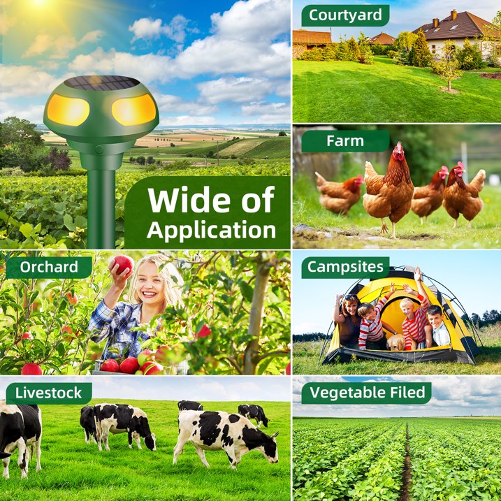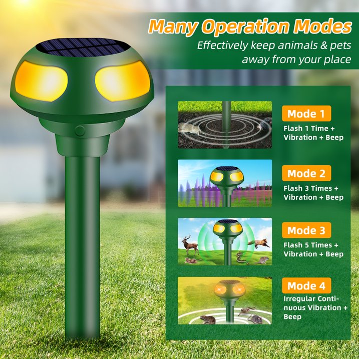 Eco-Friendly Operation: Powered by solar energy, this innovative repeller is energy-efficient and eco-friendly, reducing your carbon footprint. Enjoy effective predator deterrence without harming the environment.
